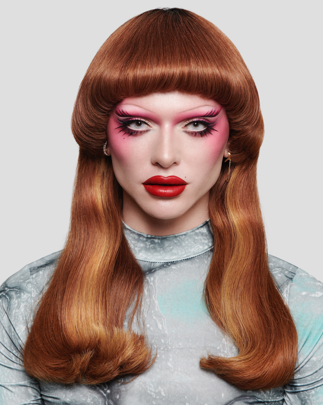 Appeal To Heaven silver top in Antares pattern. Long sleeve stretch jersey second skin with turtleneck collar. Made in Portugal.